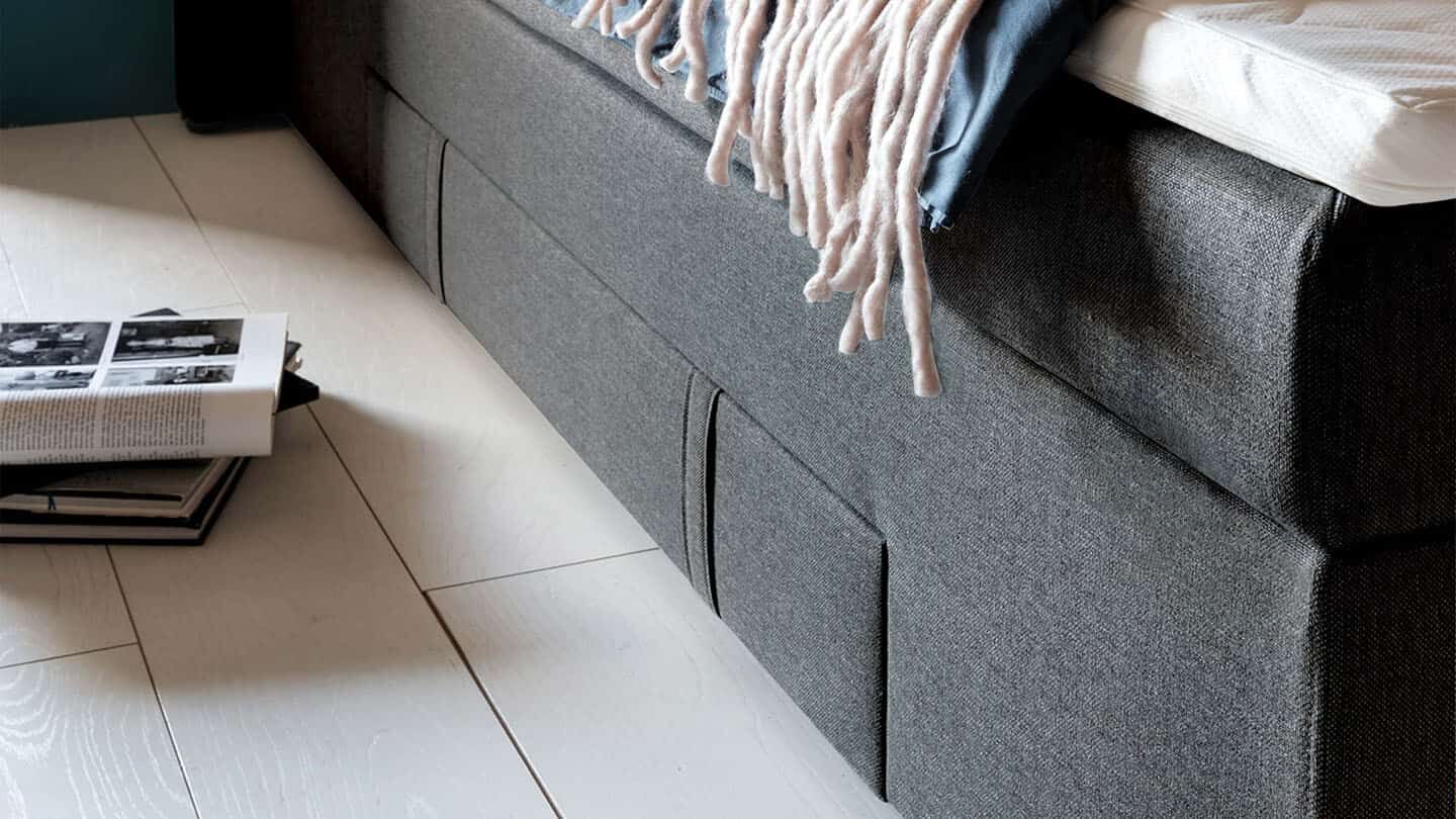 Unsere Boxspringbetten bieten eine nachhaltige Lösung für das Schlafzimmer: Anstatt das komplette Bett zu ersetzen, lassen sich bei Bedarf gezielt Matratze und/oder Topper erneuern. Dadurch fördert das Bett nicht nur den Schlafkomfort, sondern auch eine nachhaltigere Nutzung und eine geringere Umweltbelastung durch weniger Abfall.