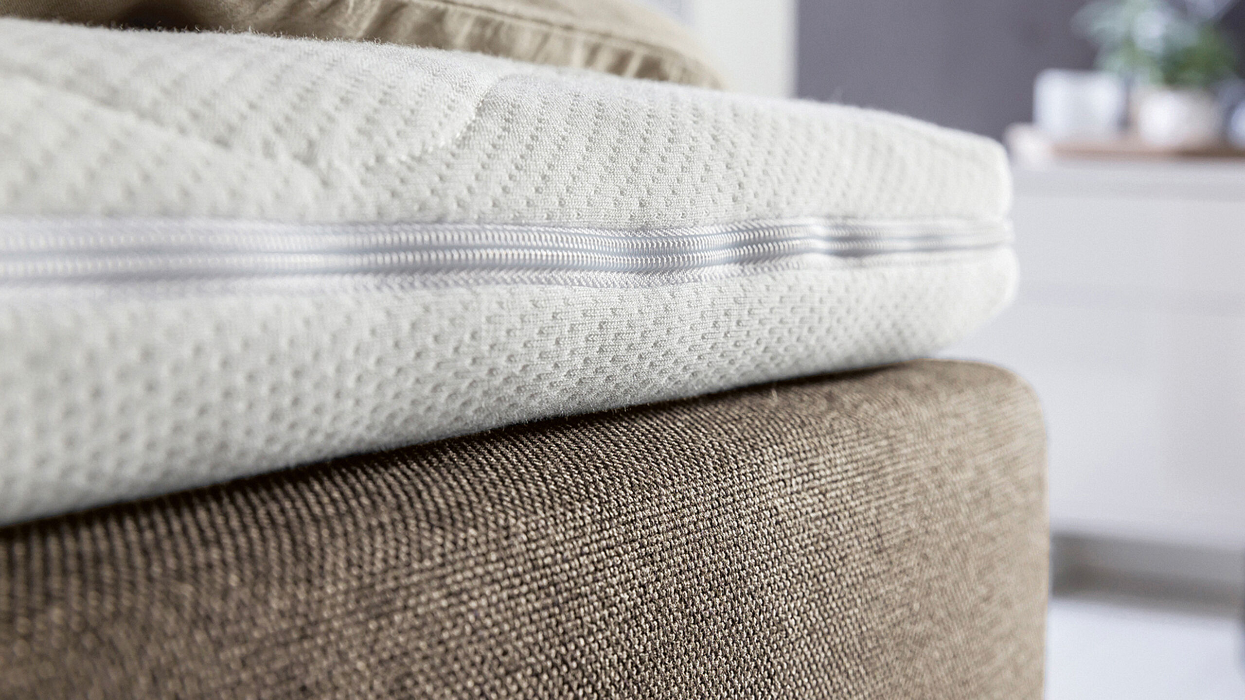 Das oberste Element des Schlafsystems bildet ein Topper, der die gesamte Breite des Bettes abdeckt. Bei Doppelbetten hat dies den zusätzlichen Vorteil einer einheitlichen, durchgehenden Liegefläche, ohne Unebenheiten.