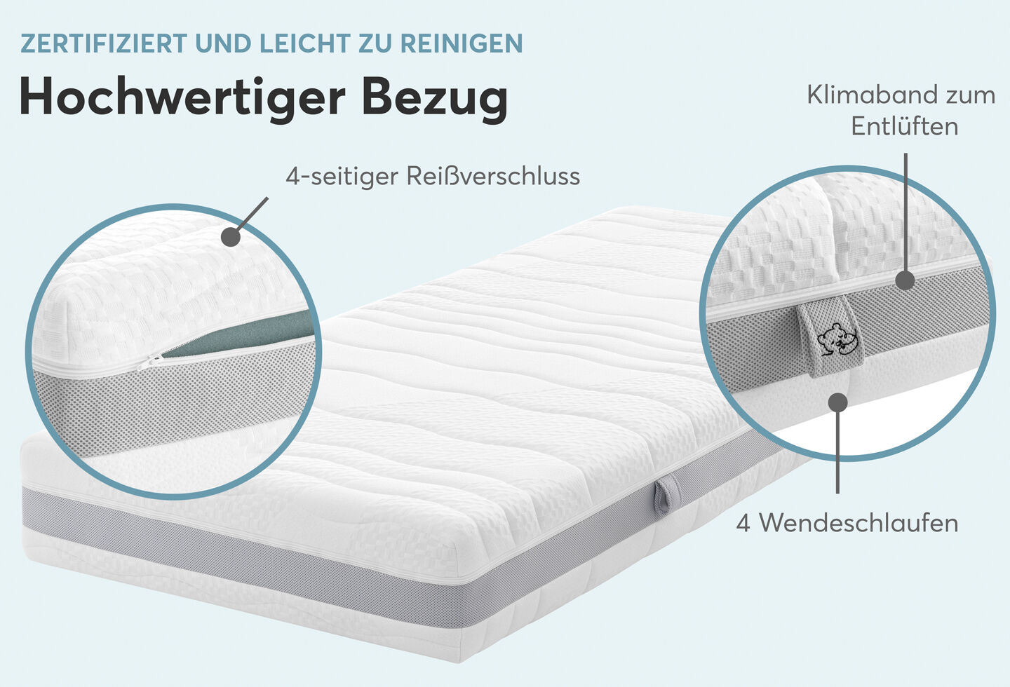 • Hochwertiger Bezug aus TENCEL™ Lyocell mit Klimaband zur Entlüftung