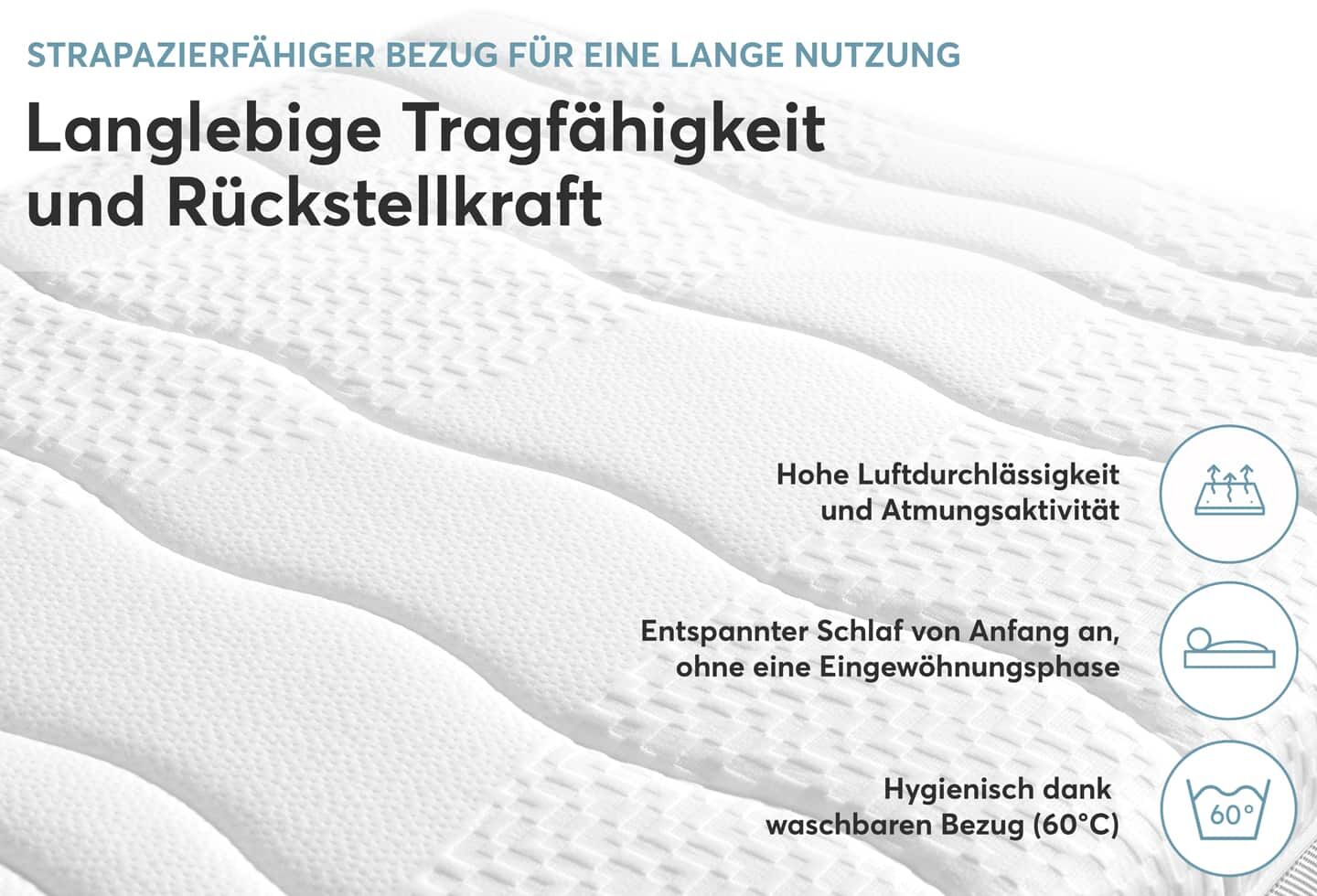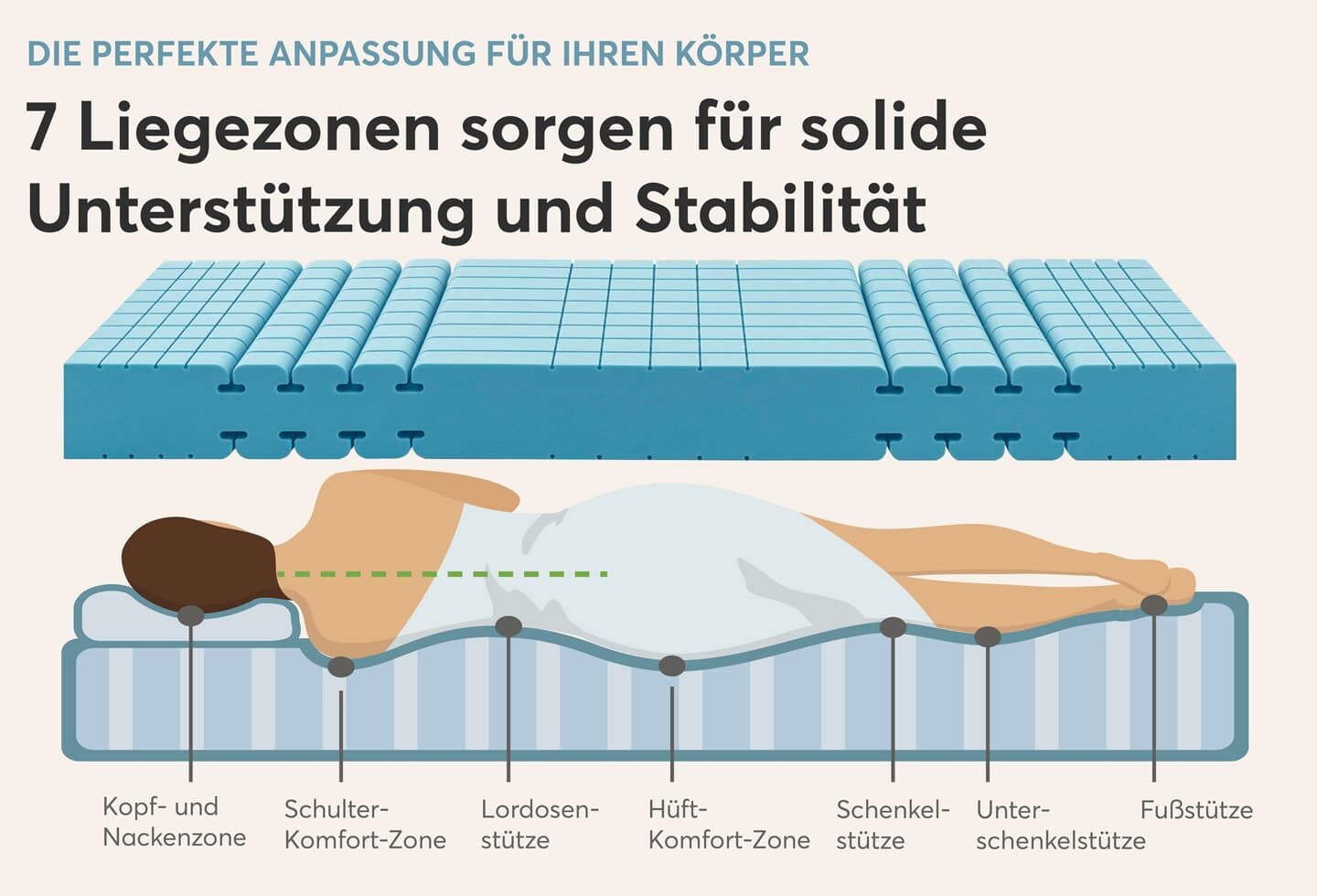 | Zonen: | 7-Zonen-Körperanpassung - Punktelastizität und gute Stützkraft | |