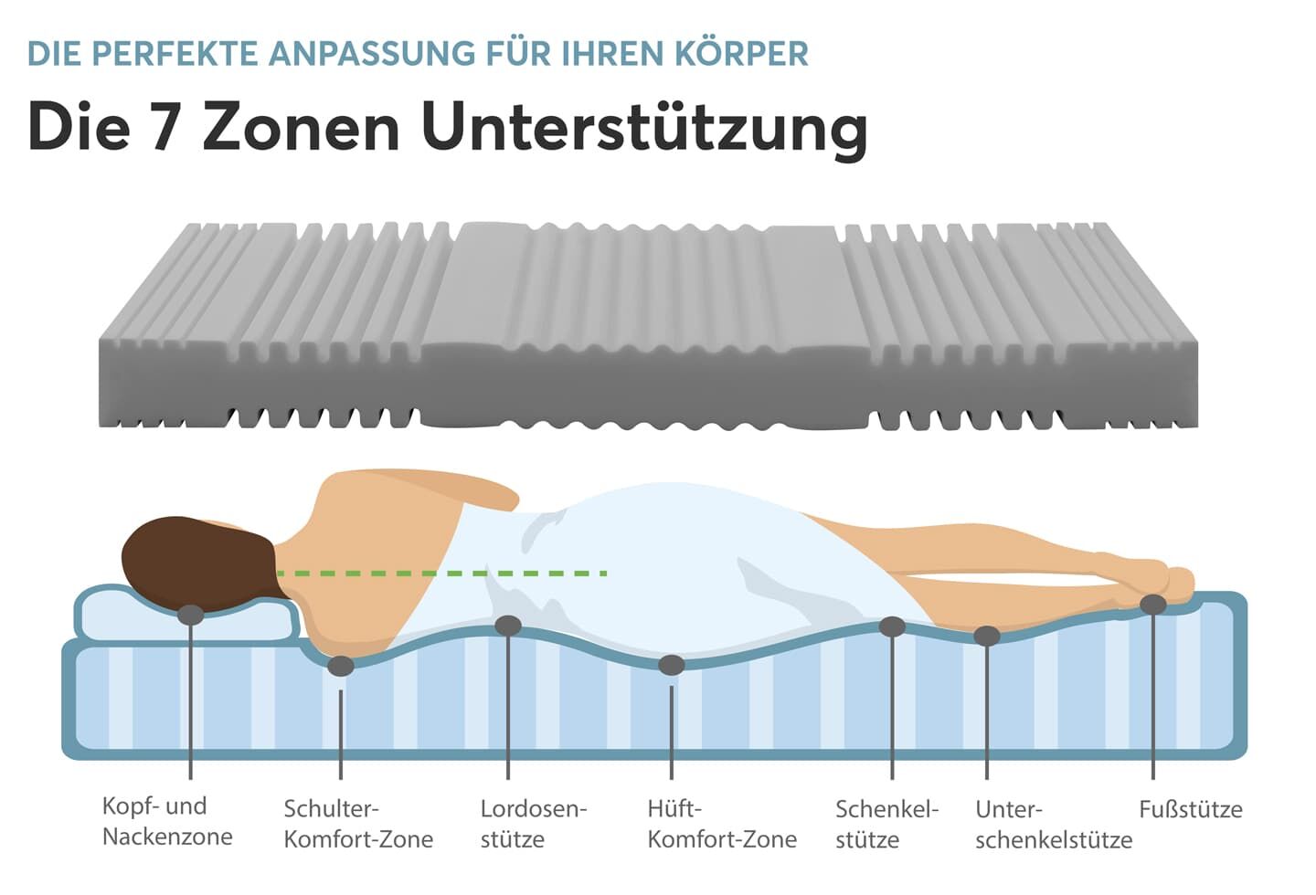 Zonen: 7-Zonen-Körperanpassung - Punktelastizität und gute Stützkraft