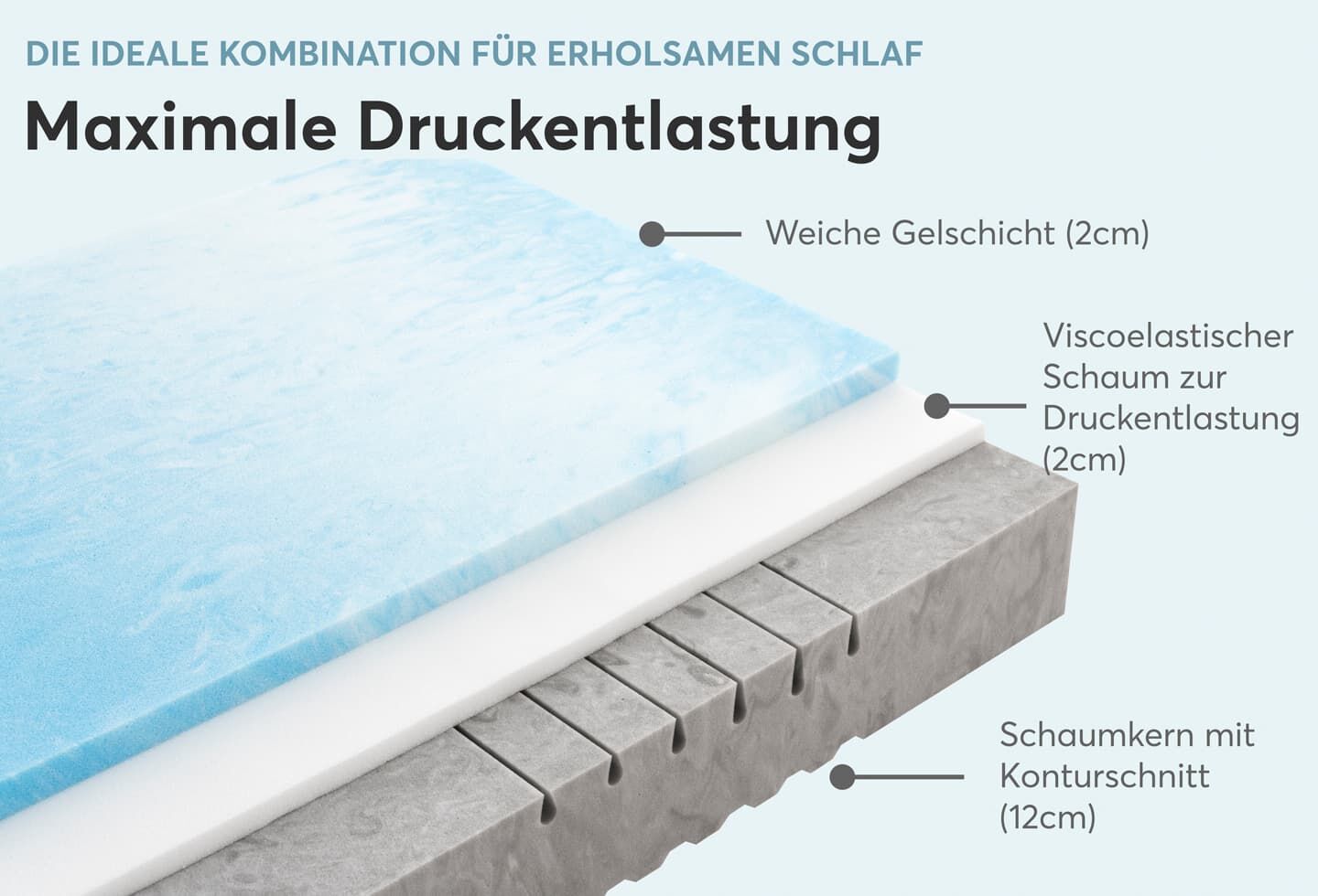- Viscoschaummatratze mit drei Schichten für ultimativen Schlafkomfort