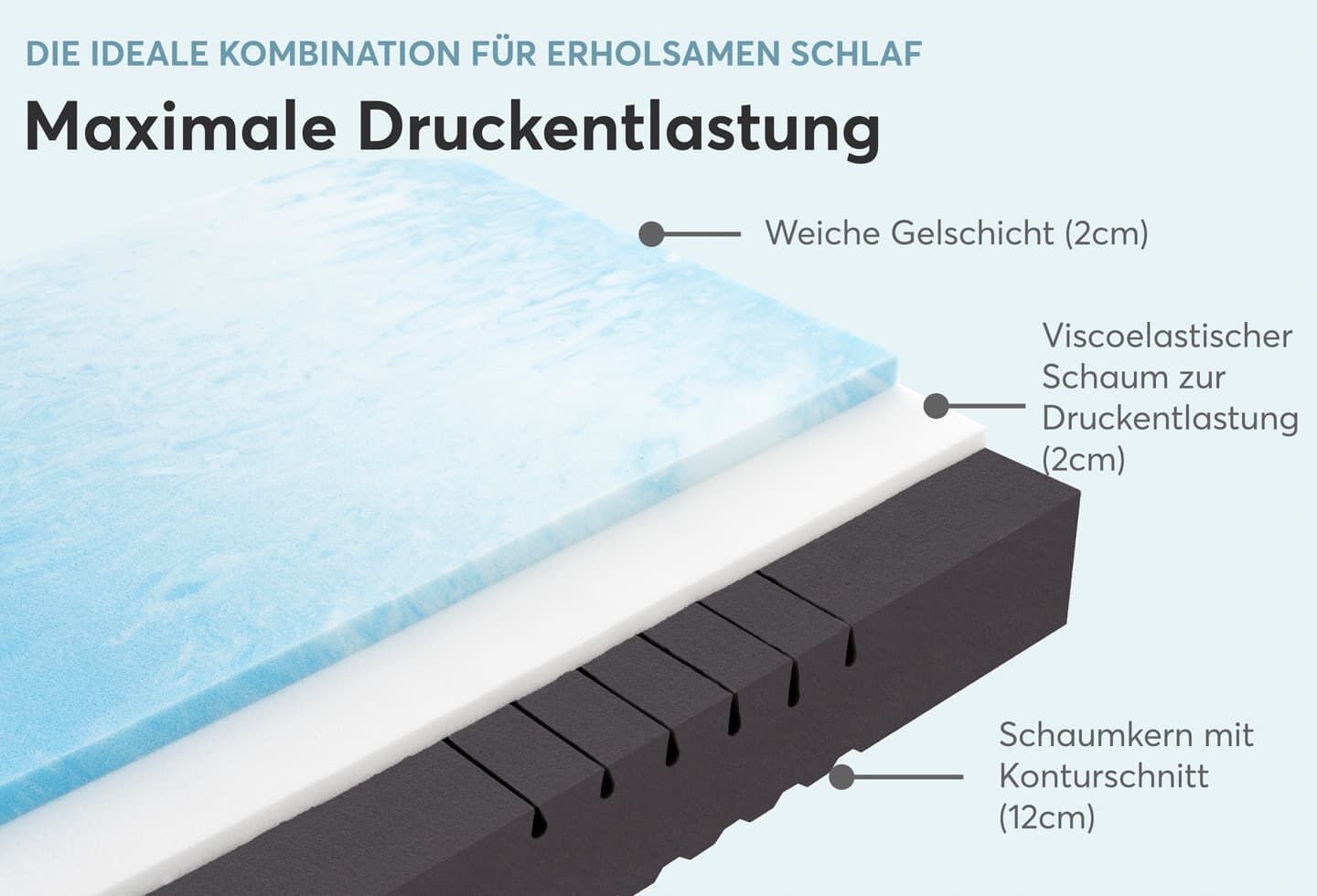 - Viscoschaummatratze mit drei Schichten für ultimativen Schlafkomfort
