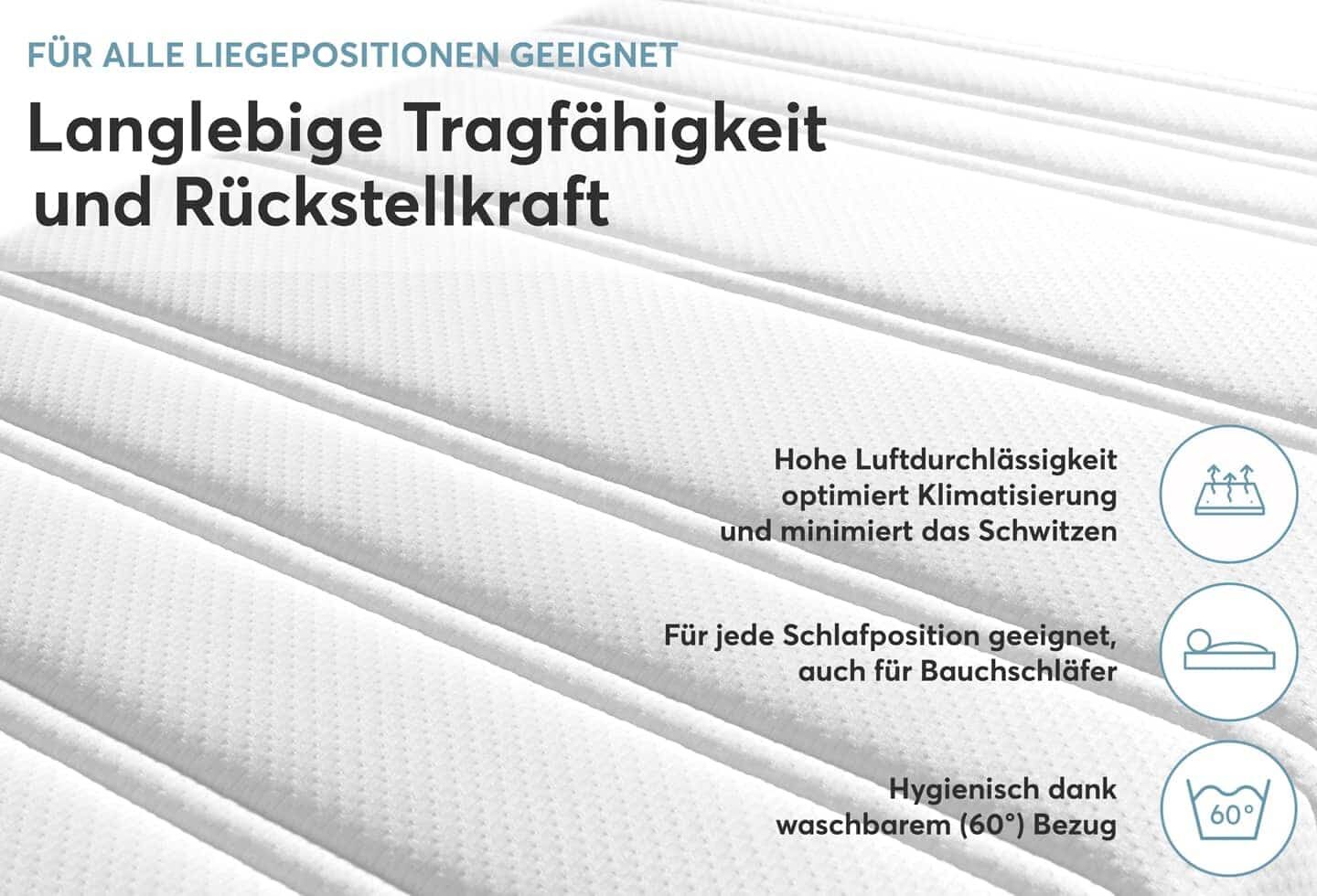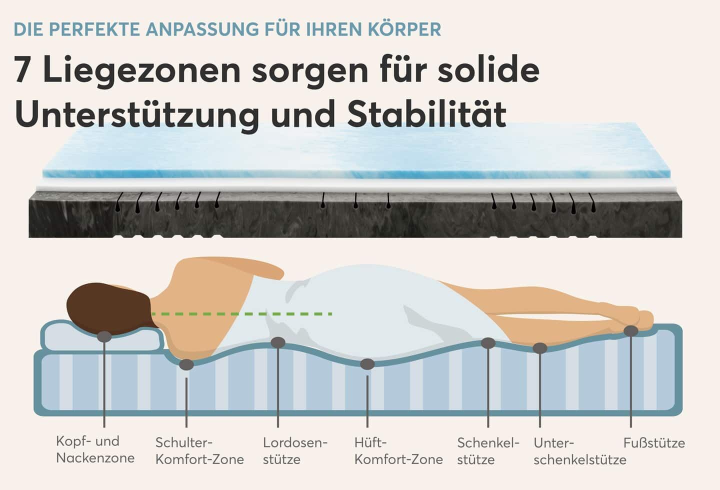 | Zonen: | 7-Zonen-Körperanpassung - Punktelastizität und gute Stützkraft | |