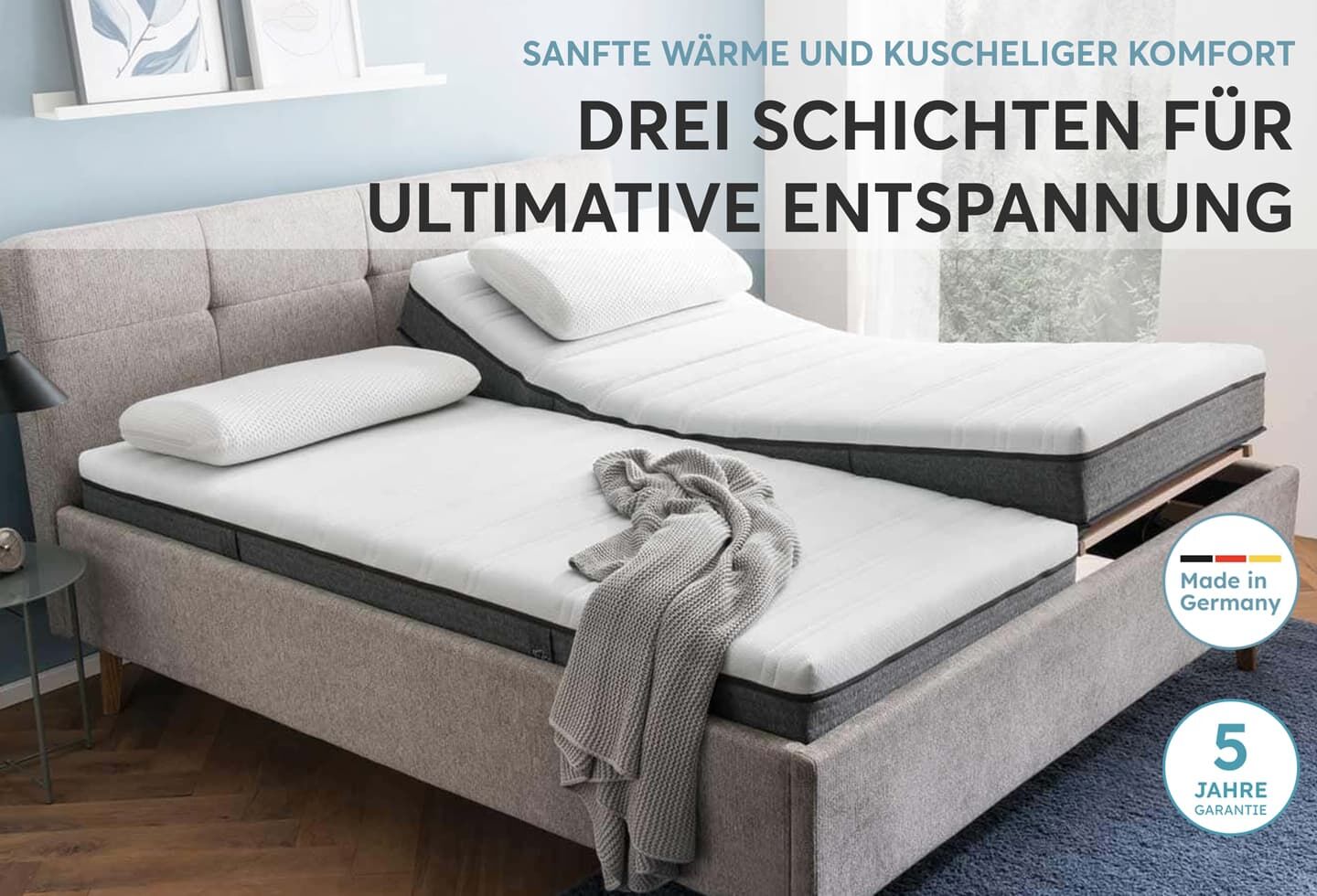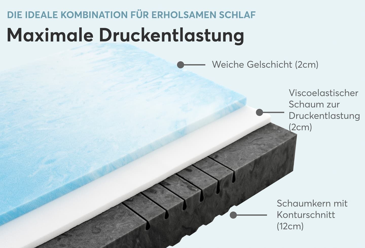 - Viscoschaummatratze mit drei Schichten für ultimativen Schlafkomfort
