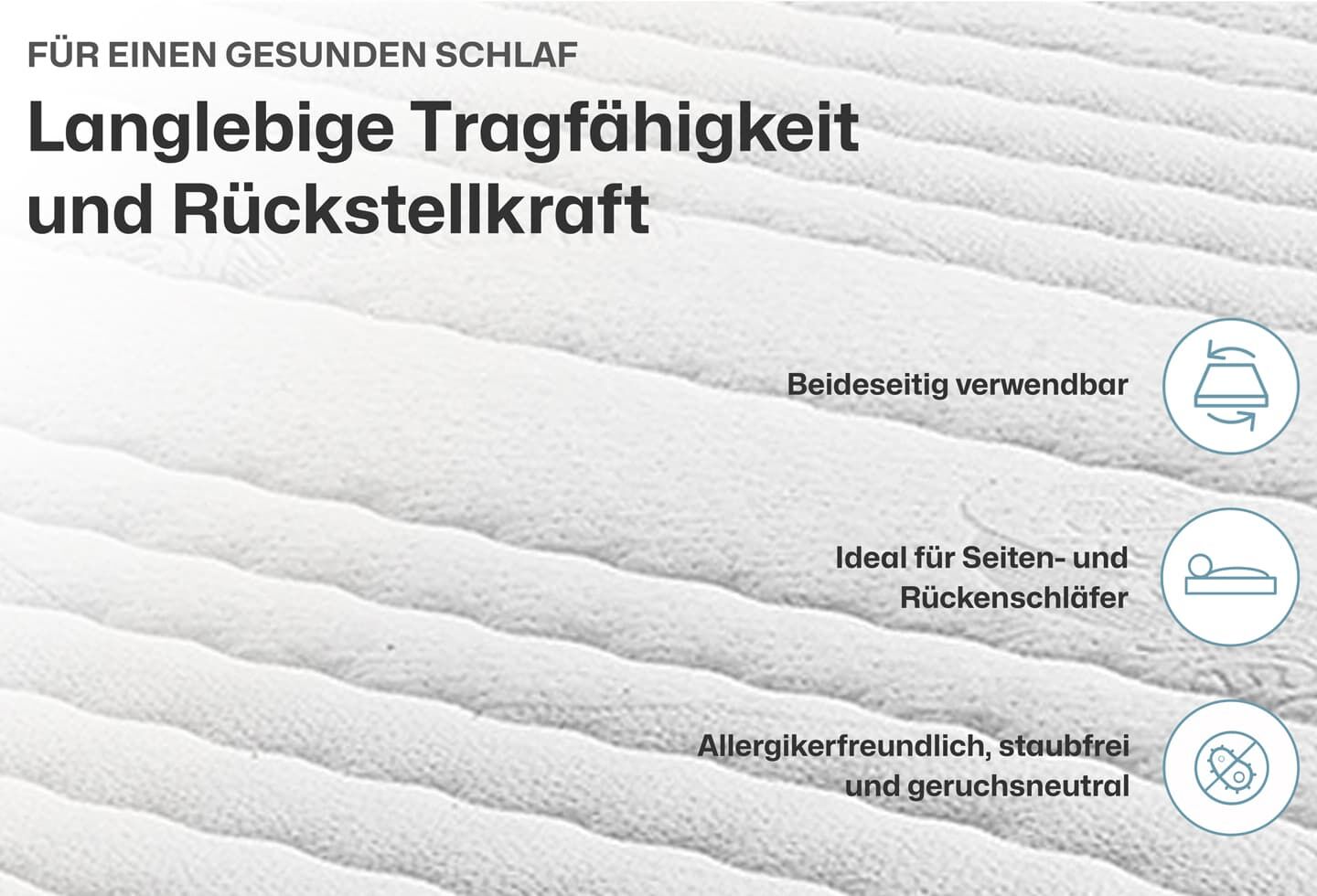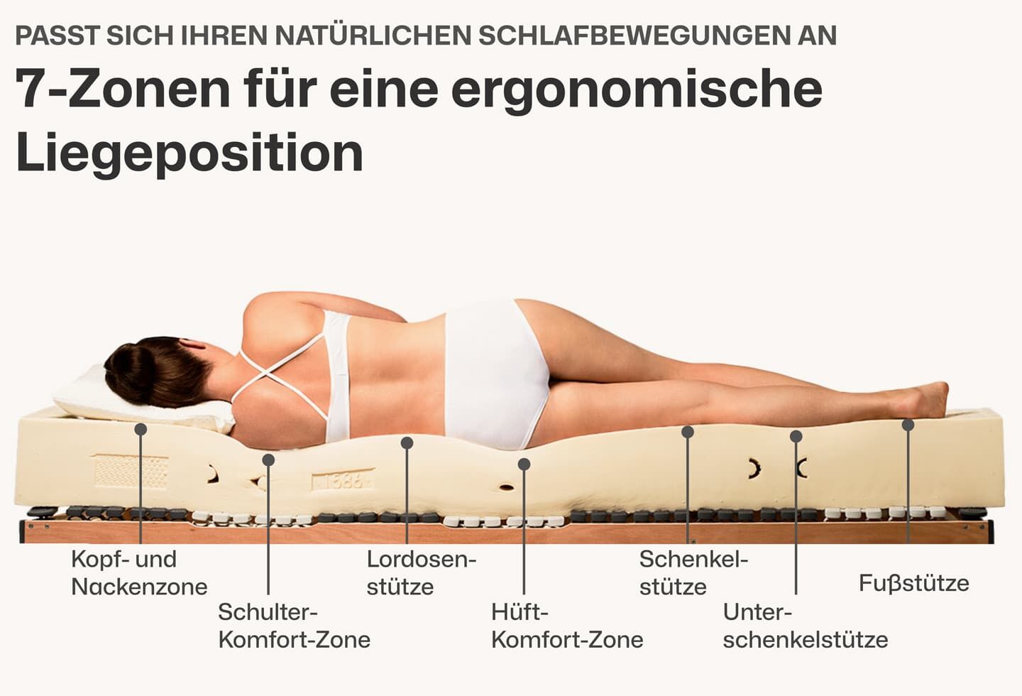 | Zonen: | 7-Zonen-Körperanpassung - Punktelastizität und gute Stützkraft | |