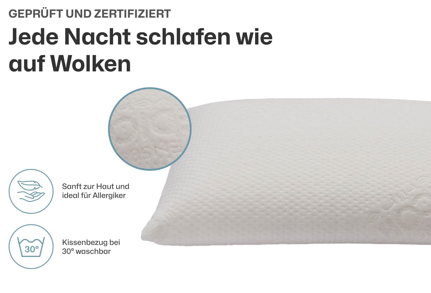 Sowohl Naturlatex als auch synthetischer Latex sind widerstandsfähig gegen Staubmilben sowie andere Allergene. Zudem vermeiden Kissen aus solch einer Materialzusammensetzung Pilzbefall und Schimmelbildung. Obendrein werden beim Herstellungsverfahren bzw. dem Waschzyklus alle Proteine entfernt, die eine Latexallergie auslösen könnten. Kurzum: Dieses Kissen ist eine äußerst empfehlenswerte Wahl für Menschen mit Allergien oder empfindlicher Haut.